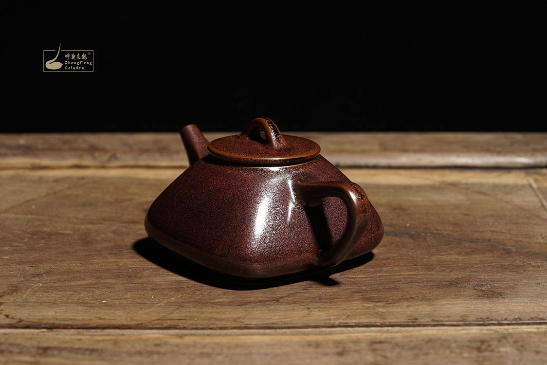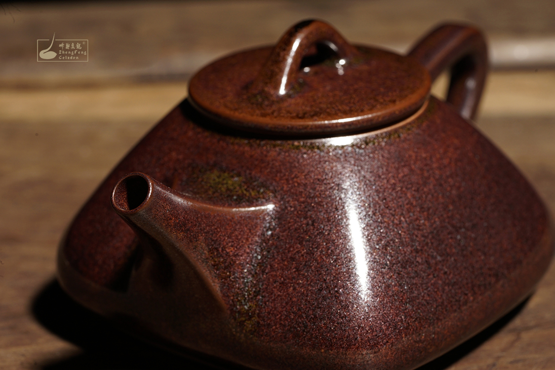 隕石天鐵—玉衡壶(石瓢壶)原 料:龍泉瓷土、鑄劍天鐵 燒制溫度:1320℃制作工藝:手工制作 龍泉窯高溫燒制规格长约:12cm高约:5.5cm口径约:4cm底足约:6cm容量约:150ml手工作品尺寸不一